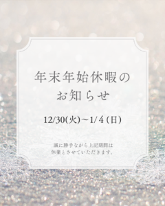 年末年始休業のお知らせ