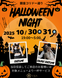 仮装でご来店のお客様に対象メニューより1杯サービスいたします。